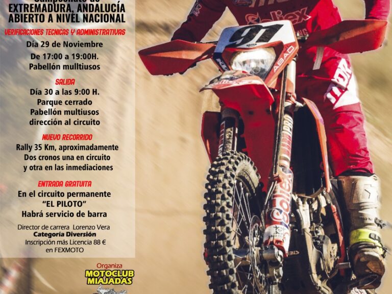 Estimados amigos: El Moto Club Talavera, informa que, debido a las condiciones meteorológicas adversas previstas para este fin de semana en Talavera de la Reina, la prueba programada para el próximo 16 de noviembre, no podrá celebrarse. Las intensas lluvias pronosticadas podrían dejar el circuito en condiciones impracticables, comprometiendo la seguridad de los pilotos, motivo por el cual se…